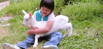 6/27子ヤギと遊ぶなずけ親の子どもたち